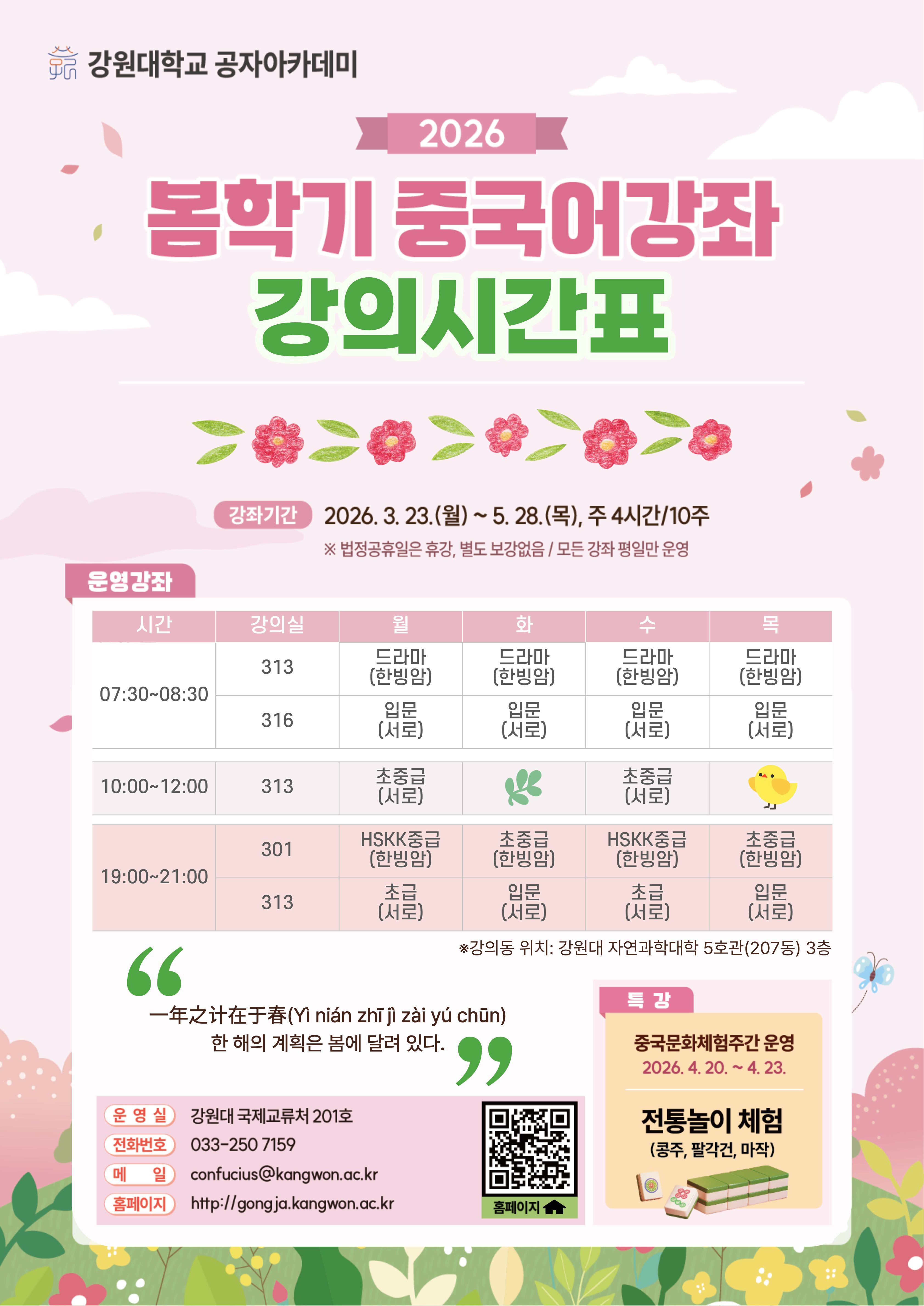 ★2026 봄학기 중국어강좌 강의실 배정안내
